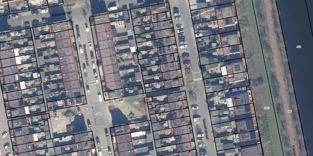 Gebruik de zoekbalk of klik op een perceel om informatie over het perceel te bekijken.