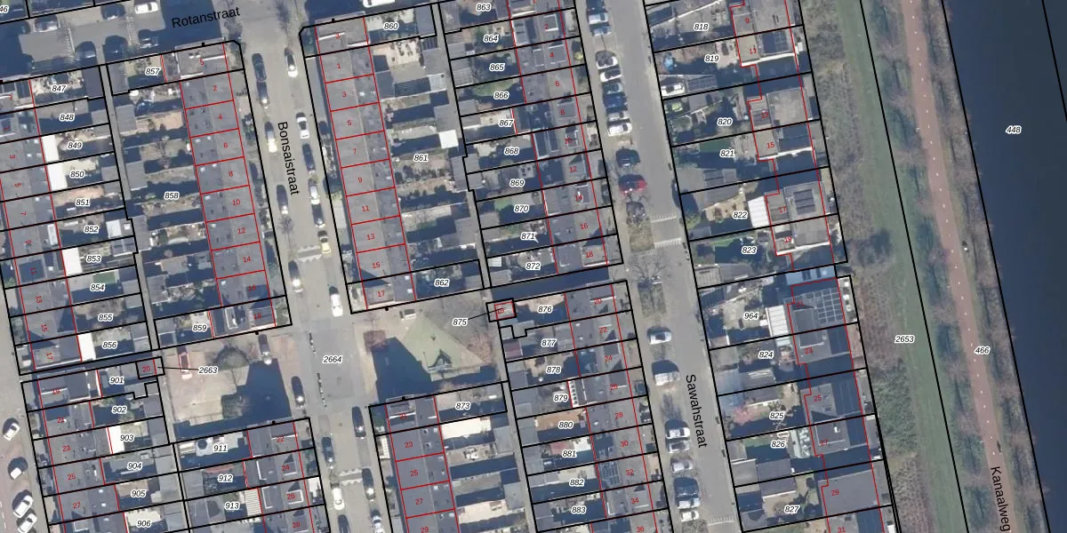 Gebruik de zoekbalk of klik op een perceel om informatie over het perceel te bekijken.
