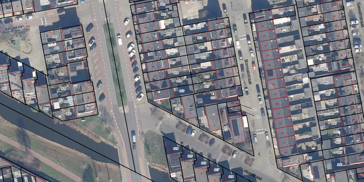 Gebruik de zoekbalk of klik op een perceel om informatie over het perceel te bekijken.