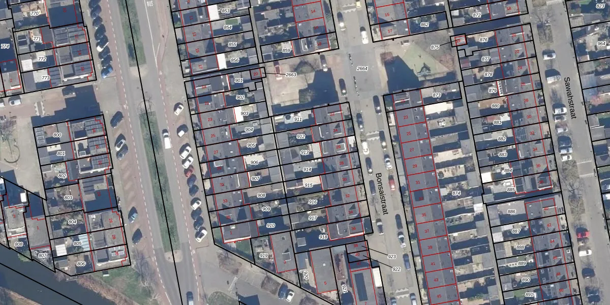 Gebruik de zoekbalk of klik op een perceel om informatie over het perceel te bekijken.