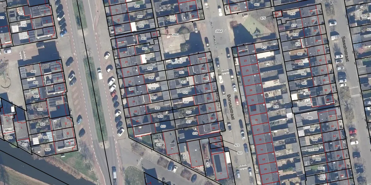 Gebruik de zoekbalk of klik op een perceel om informatie over het perceel te bekijken.