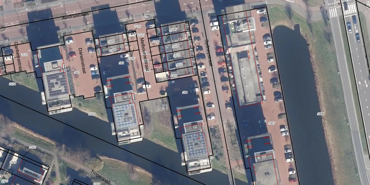 Gebruik de zoekbalk of klik op een perceel om informatie over het perceel te bekijken.