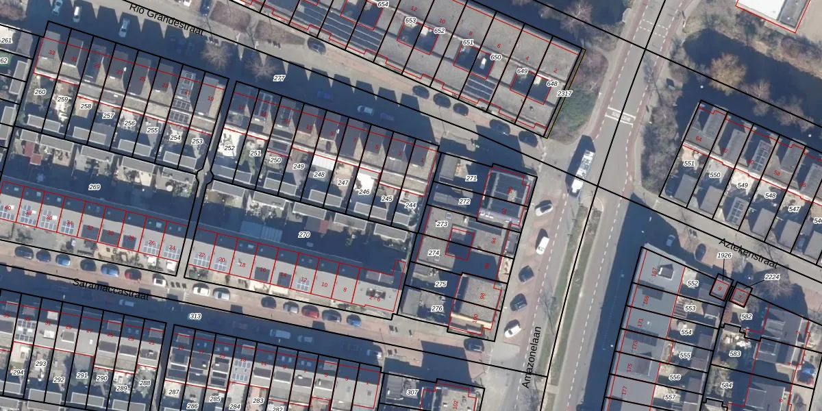 Gebruik de zoekbalk of klik op een perceel om informatie over het perceel te bekijken.
