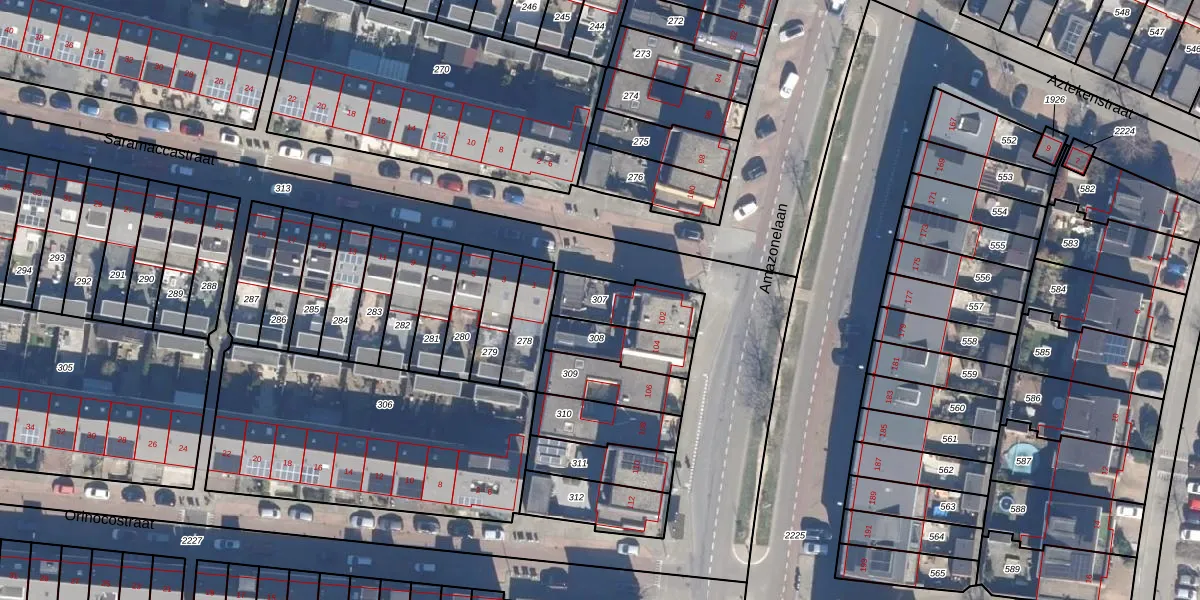 Gebruik de zoekbalk of klik op een perceel om informatie over het perceel te bekijken.