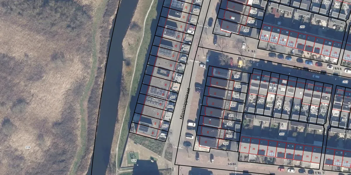 Gebruik de zoekbalk of klik op een perceel om informatie over het perceel te bekijken.