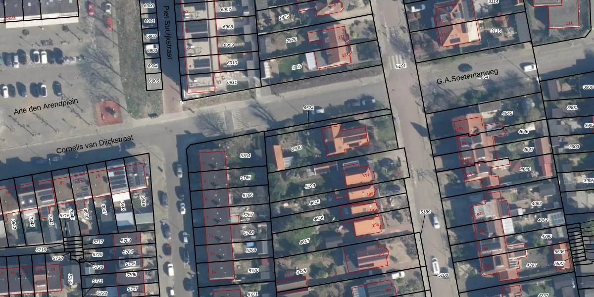 Gebruik de zoekbalk of klik op een perceel om informatie over het perceel te bekijken.