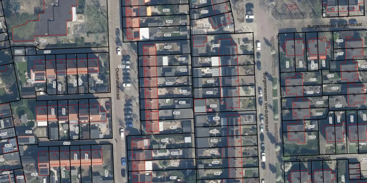 Gebruik de zoekbalk of klik op een perceel om informatie over het perceel te bekijken.