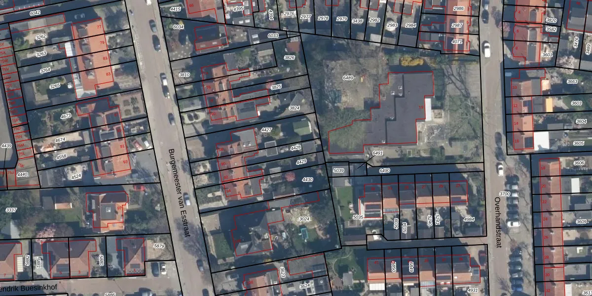 Gebruik de zoekbalk of klik op een perceel om informatie over het perceel te bekijken.