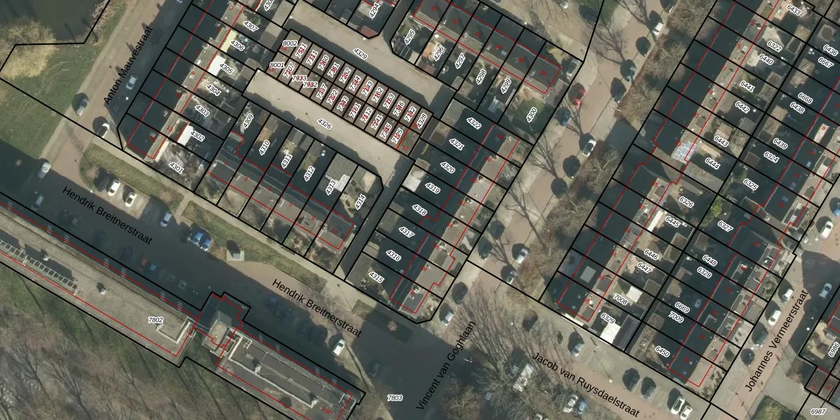 Gebruik de zoekbalk of klik op een perceel om informatie over het perceel te bekijken.