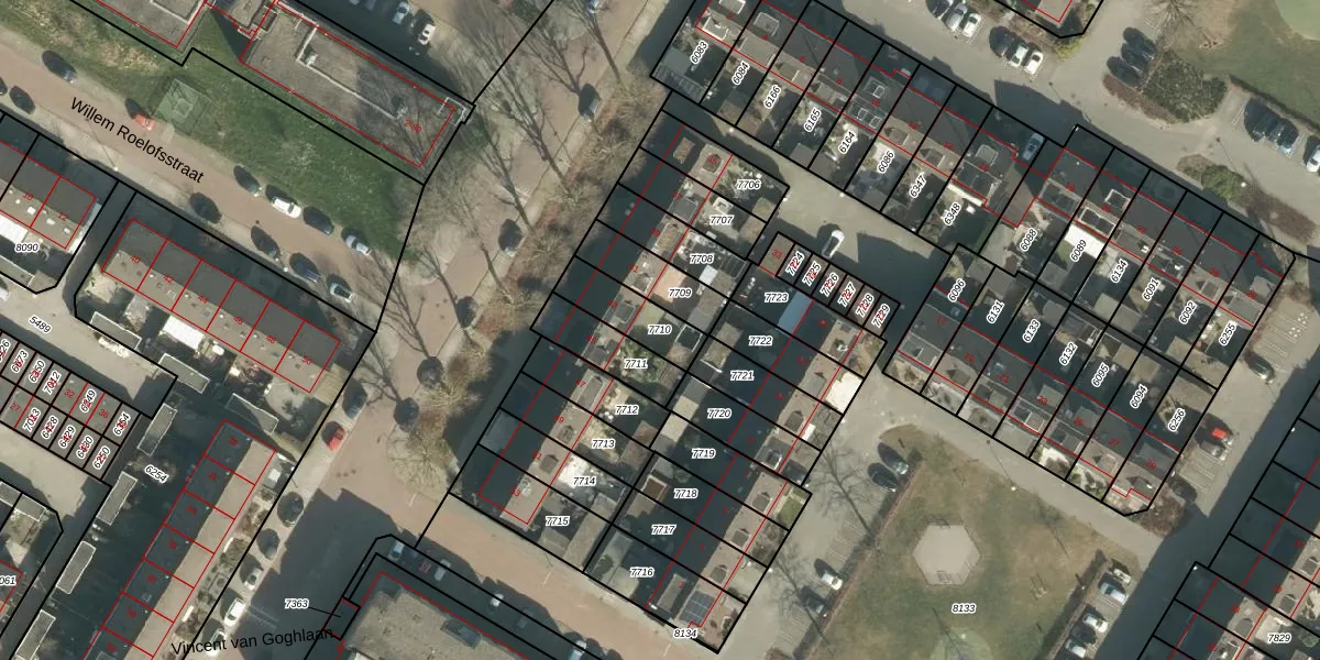 Gebruik de zoekbalk of klik op een perceel om informatie over het perceel te bekijken.