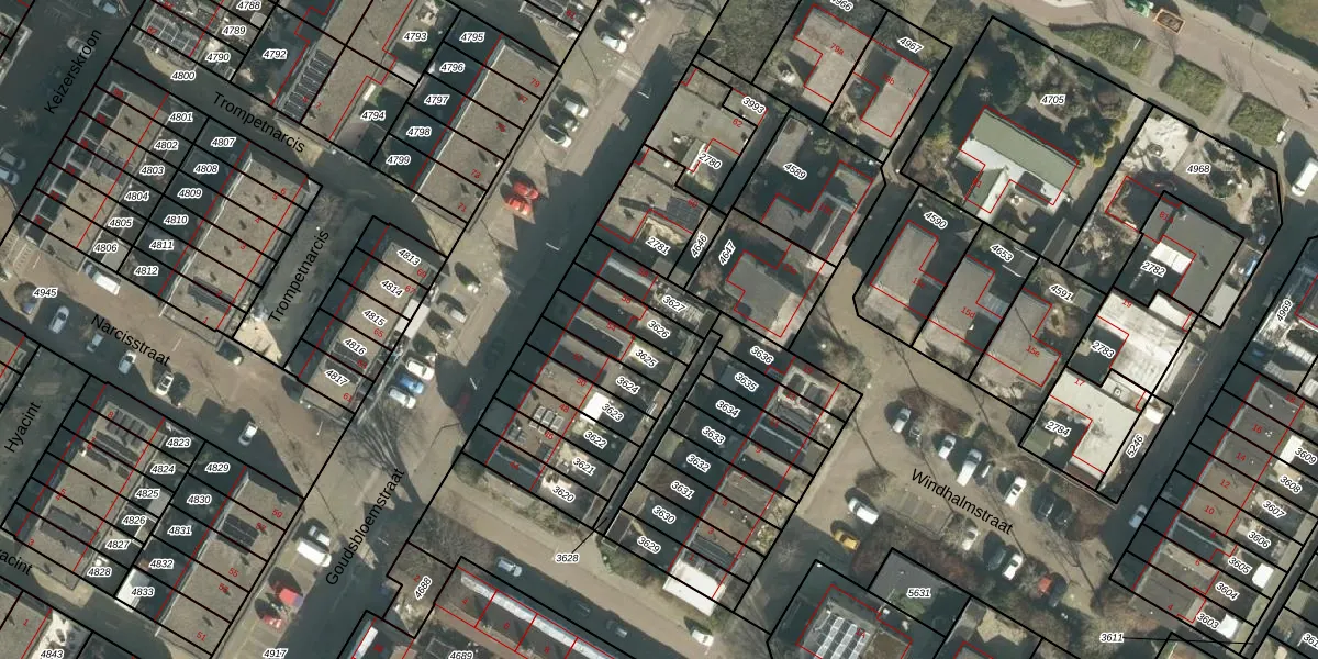 Gebruik de zoekbalk of klik op een perceel om informatie over het perceel te bekijken.