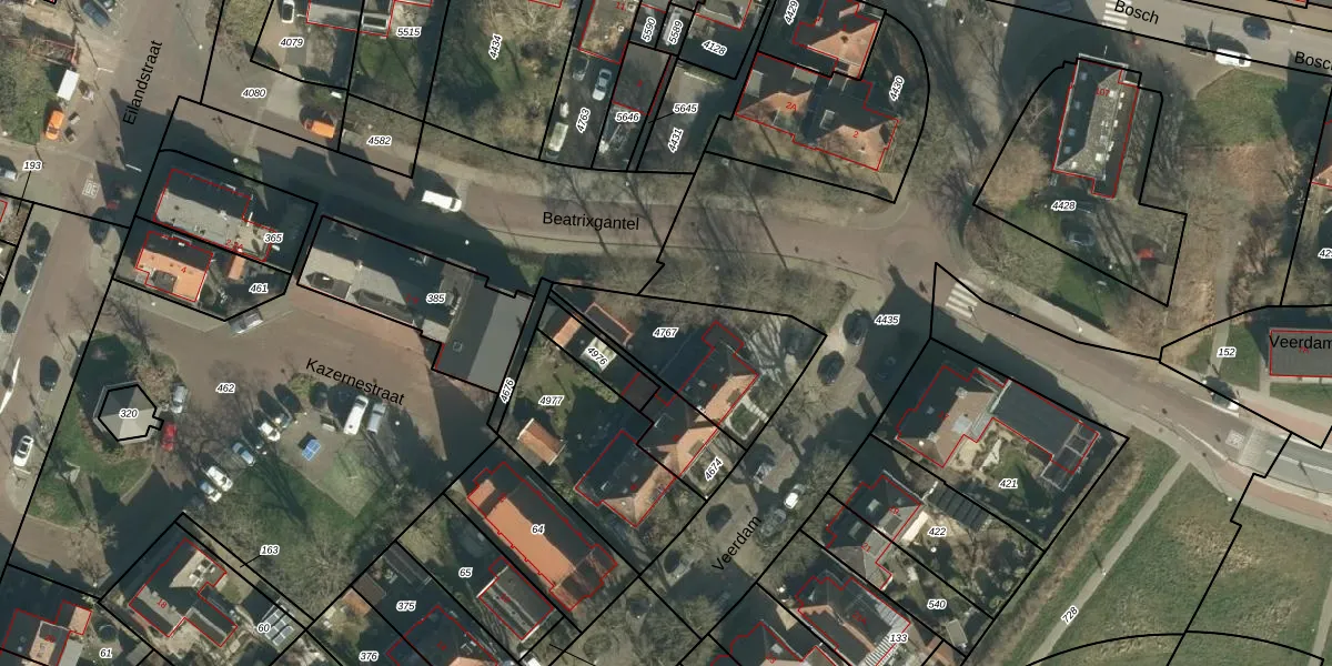Gebruik de zoekbalk of klik op een perceel om informatie over het perceel te bekijken.