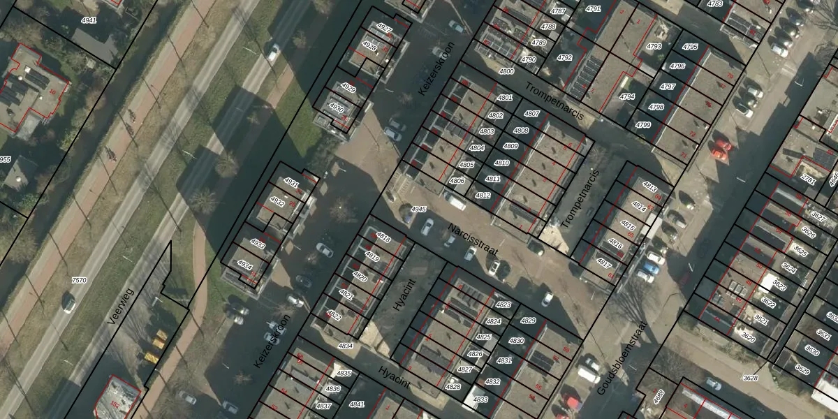 Gebruik de zoekbalk of klik op een perceel om informatie over het perceel te bekijken.