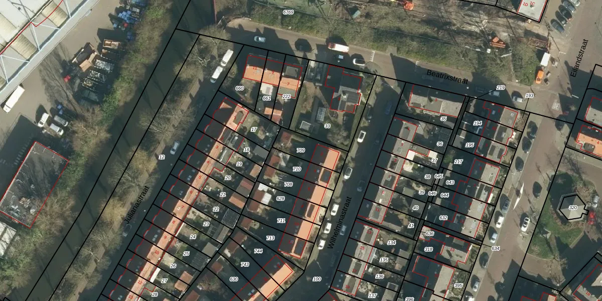 Gebruik de zoekbalk of klik op een perceel om informatie over het perceel te bekijken.