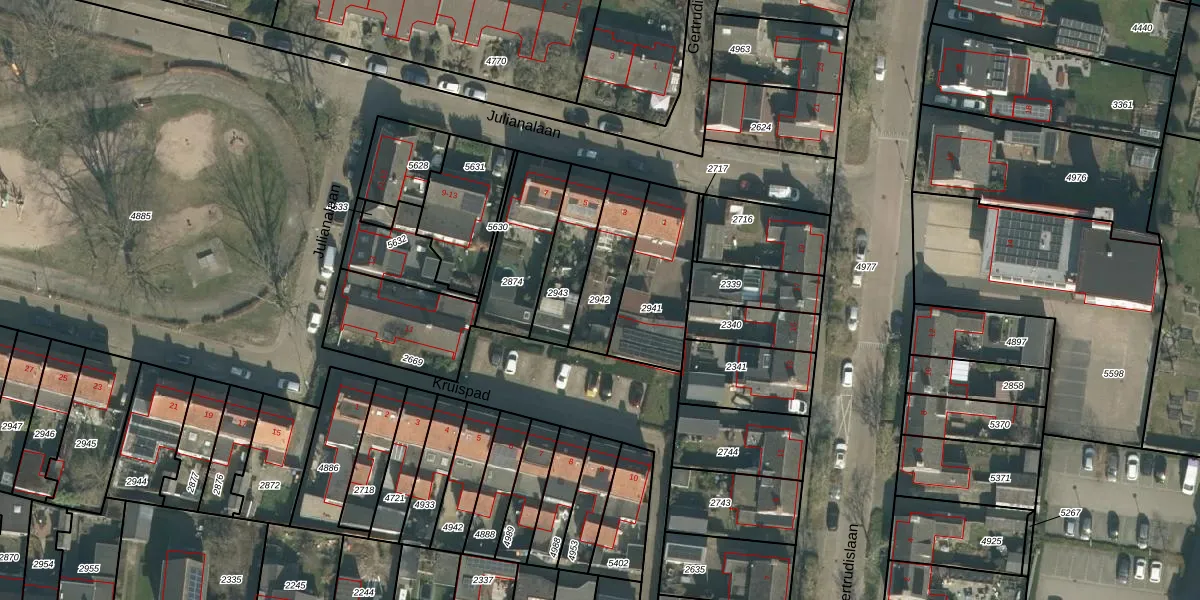 Gebruik de zoekbalk of klik op een perceel om informatie over het perceel te bekijken.