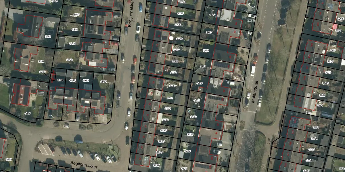 Gebruik de zoekbalk of klik op een perceel om informatie over het perceel te bekijken.