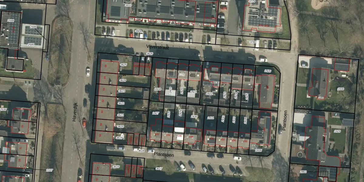 Gebruik de zoekbalk of klik op een perceel om informatie over het perceel te bekijken.