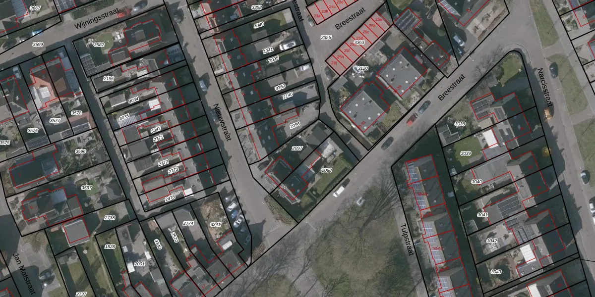 Gebruik de zoekbalk of klik op een perceel om informatie over het perceel te bekijken.