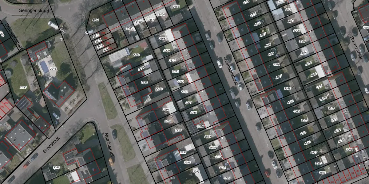 Gebruik de zoekbalk of klik op een perceel om informatie over het perceel te bekijken.