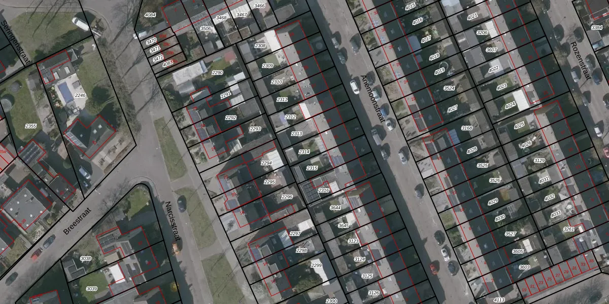 Gebruik de zoekbalk of klik op een perceel om informatie over het perceel te bekijken.