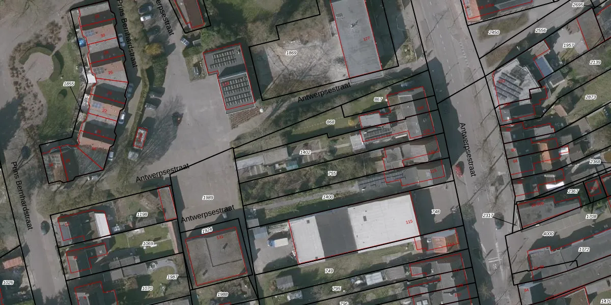 Gebruik de zoekbalk of klik op een perceel om informatie over het perceel te bekijken.