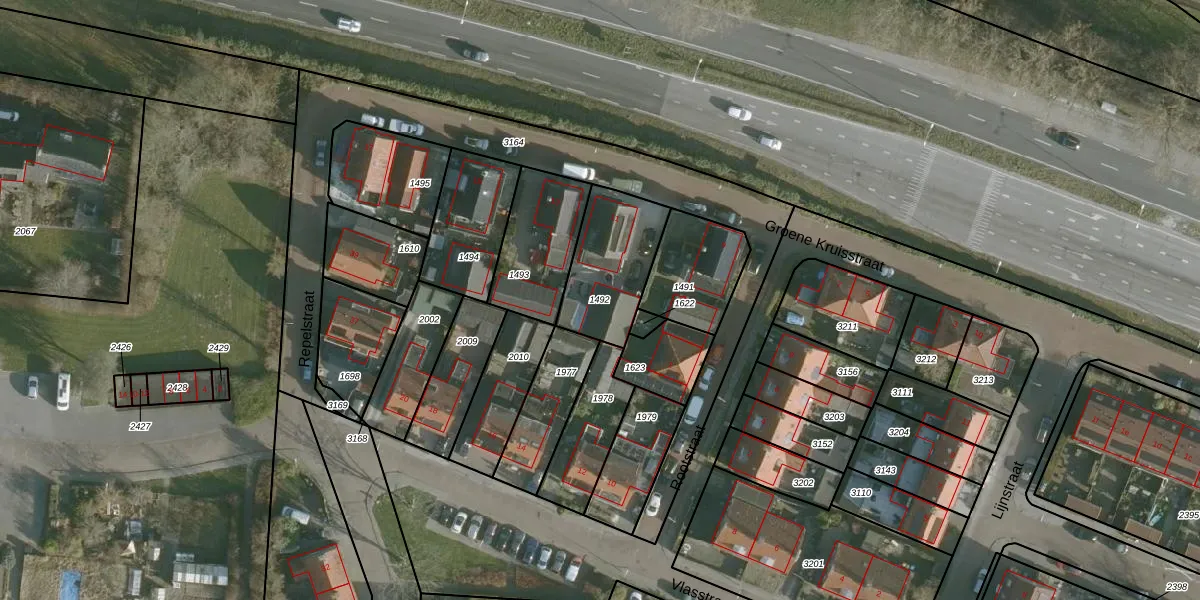 Gebruik de zoekbalk of klik op een perceel om informatie over het perceel te bekijken.