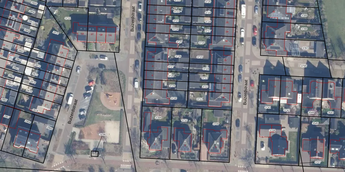 Gebruik de zoekbalk of klik op een perceel om informatie over het perceel te bekijken.