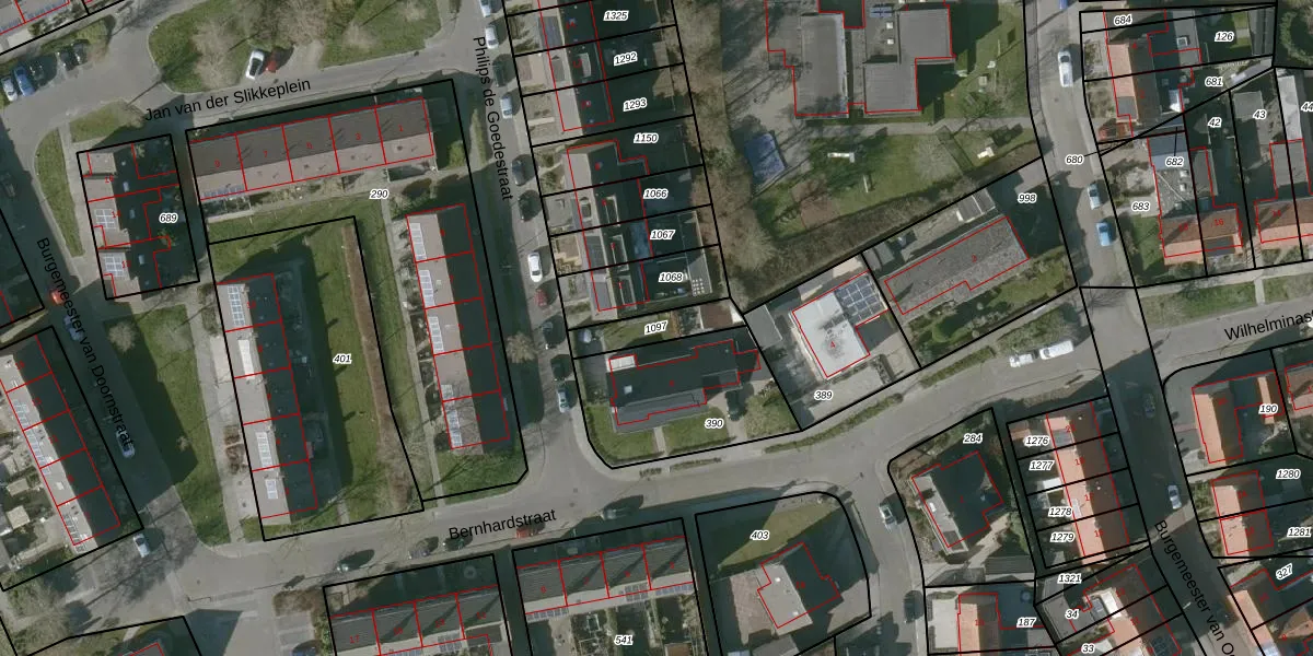Gebruik de zoekbalk of klik op een perceel om informatie over het perceel te bekijken.