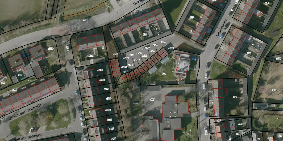 Gebruik de zoekbalk of klik op een perceel om informatie over het perceel te bekijken.