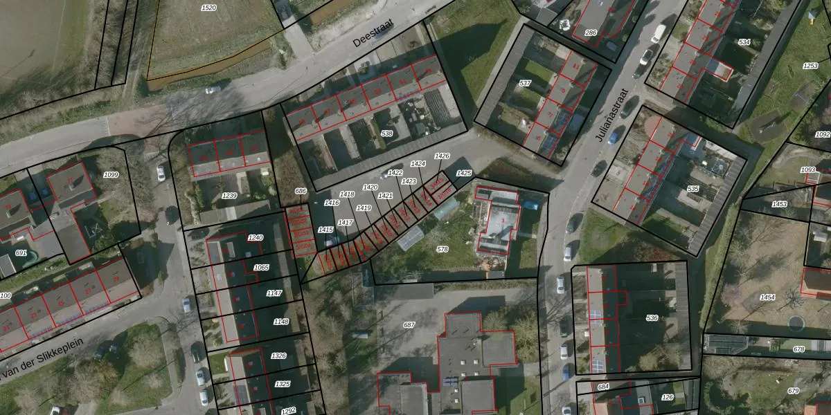 Gebruik de zoekbalk of klik op een perceel om informatie over het perceel te bekijken.