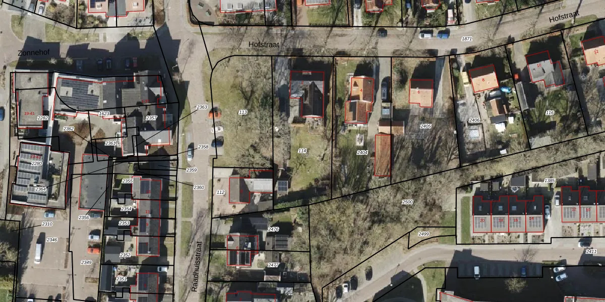 Gebruik de zoekbalk of klik op een perceel om informatie over het perceel te bekijken.