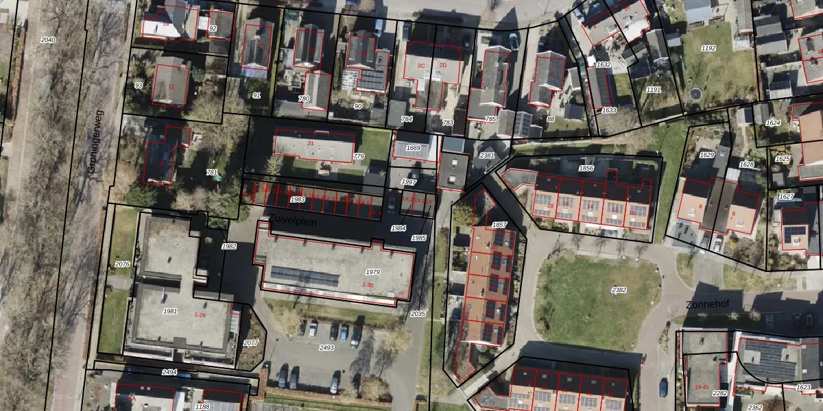 Gebruik de zoekbalk of klik op een perceel om informatie over het perceel te bekijken.