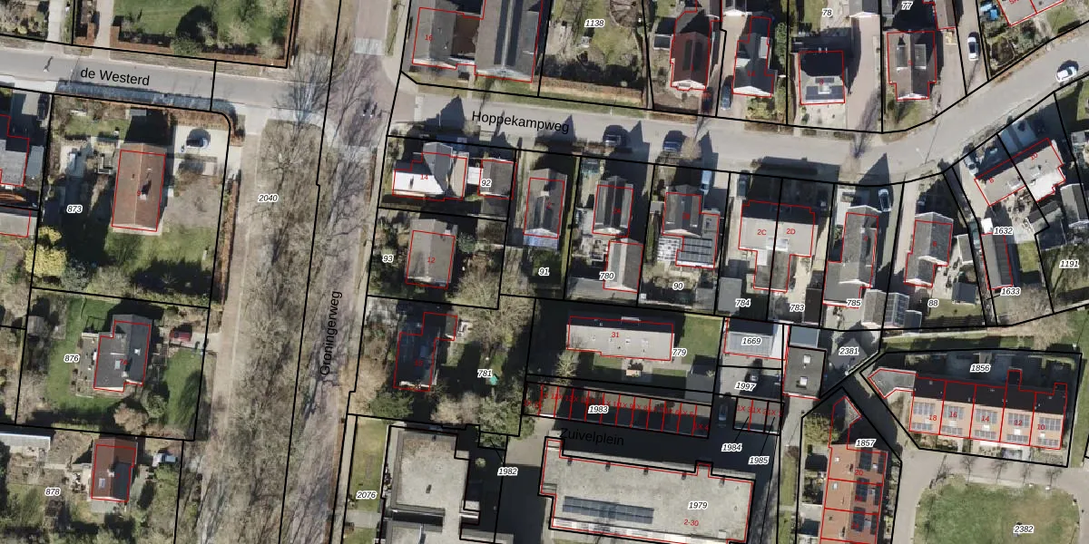 Gebruik de zoekbalk of klik op een perceel om informatie over het perceel te bekijken.