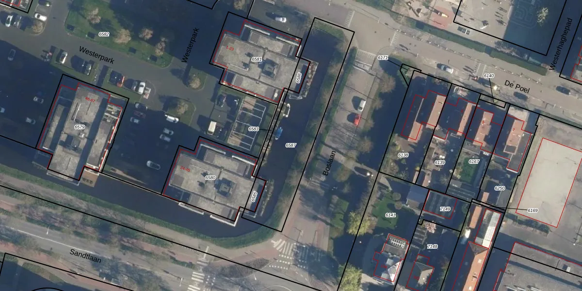Gebruik de zoekbalk of klik op een perceel om informatie over het perceel te bekijken.