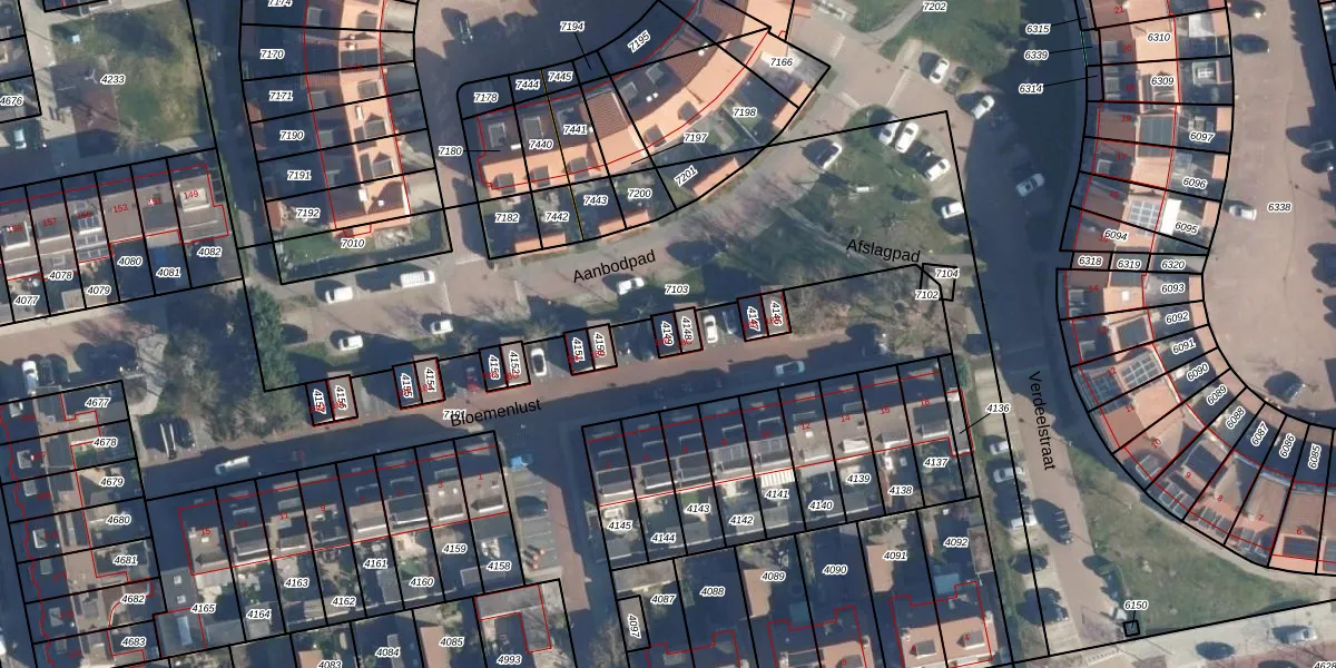 Gebruik de zoekbalk of klik op een perceel om informatie over het perceel te bekijken.