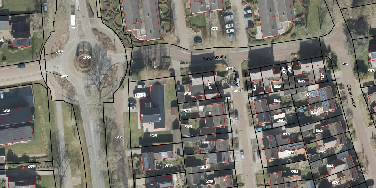 Gebruik de zoekbalk of klik op een perceel om informatie over het perceel te bekijken.