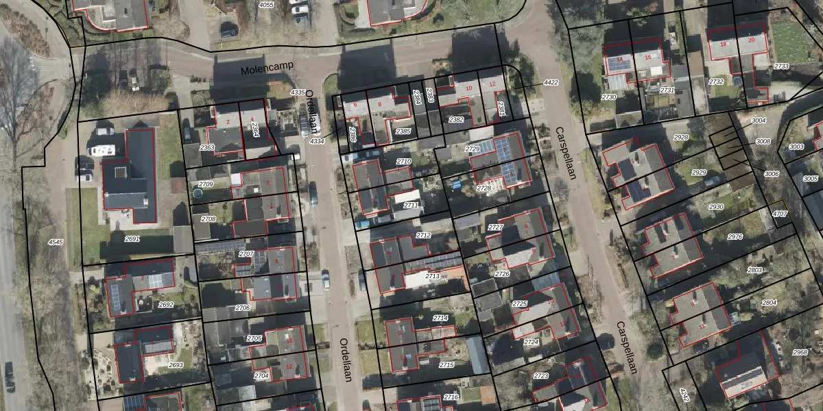 Gebruik de zoekbalk of klik op een perceel om informatie over het perceel te bekijken.