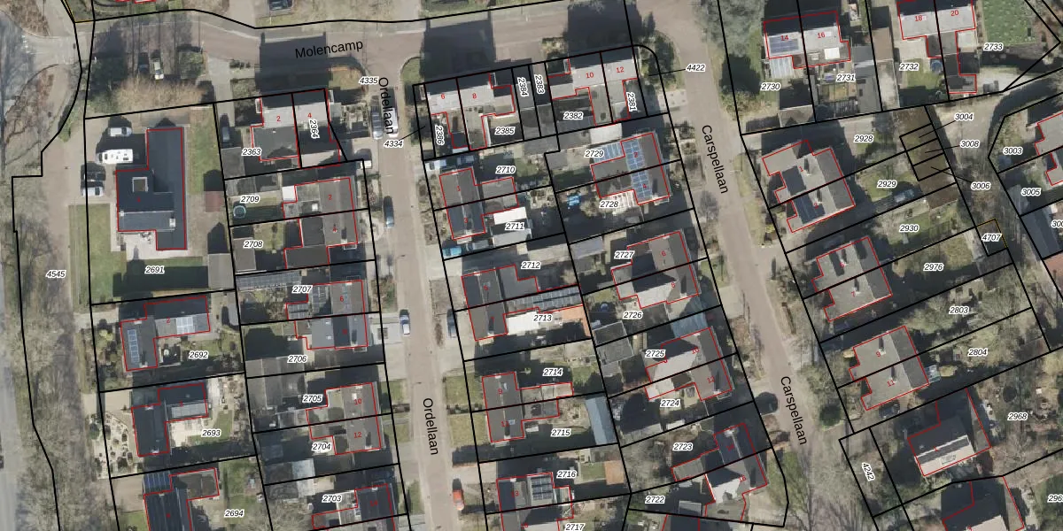 Gebruik de zoekbalk of klik op een perceel om informatie over het perceel te bekijken.