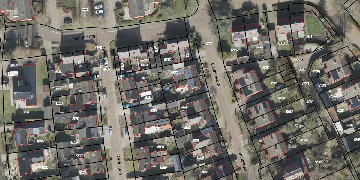 Gebruik de zoekbalk of klik op een perceel om informatie over het perceel te bekijken.