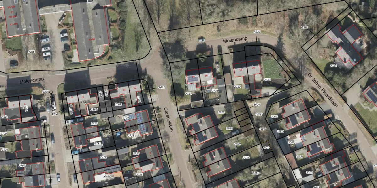 Gebruik de zoekbalk of klik op een perceel om informatie over het perceel te bekijken.