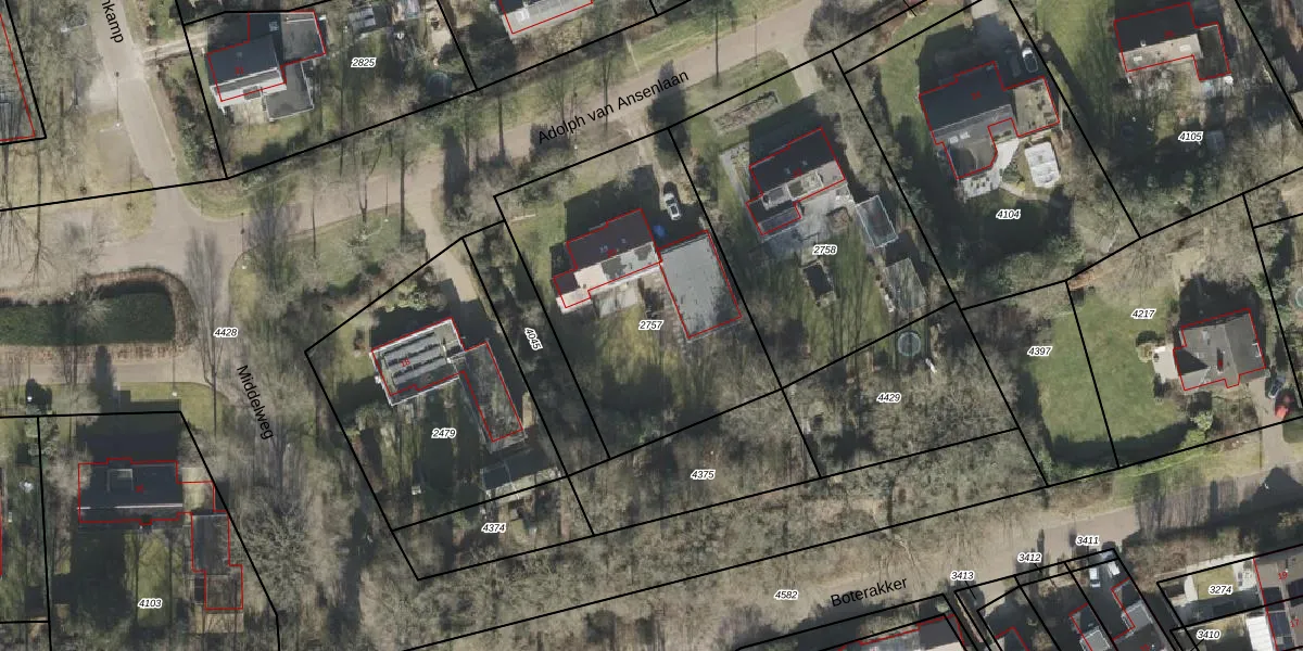 Gebruik de zoekbalk of klik op een perceel om informatie over het perceel te bekijken.