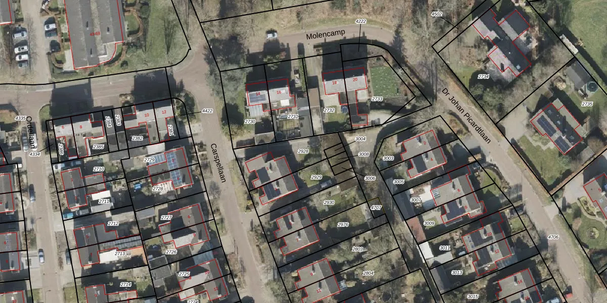 Gebruik de zoekbalk of klik op een perceel om informatie over het perceel te bekijken.