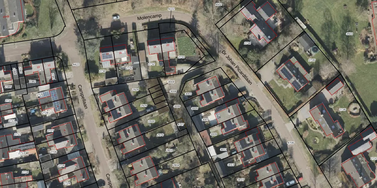 Gebruik de zoekbalk of klik op een perceel om informatie over het perceel te bekijken.