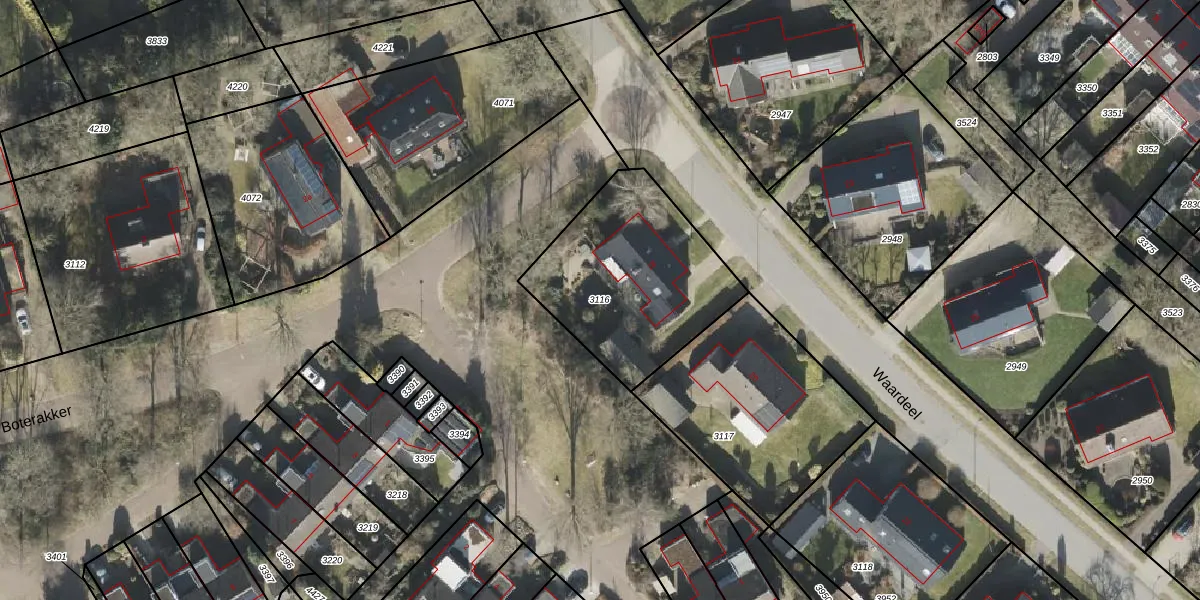 Gebruik de zoekbalk of klik op een perceel om informatie over het perceel te bekijken.