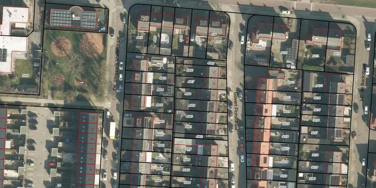 Gebruik de zoekbalk of klik op een perceel om informatie over het perceel te bekijken.
