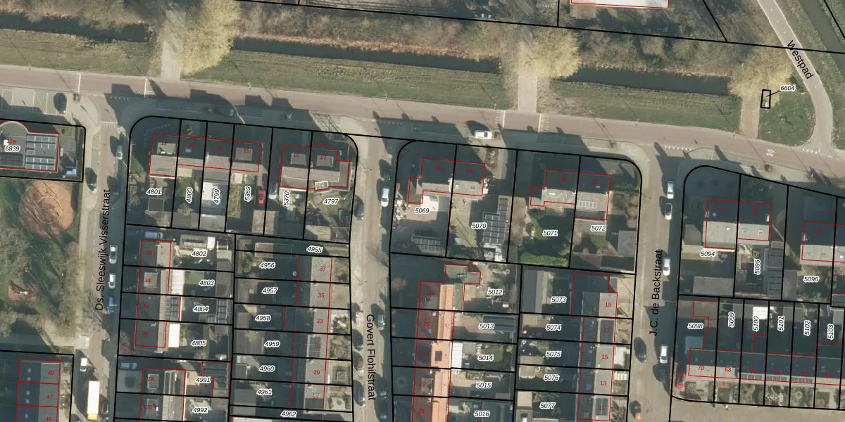 Gebruik de zoekbalk of klik op een perceel om informatie over het perceel te bekijken.