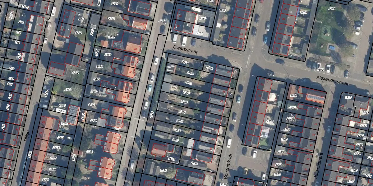 Gebruik de zoekbalk of klik op een perceel om informatie over het perceel te bekijken.