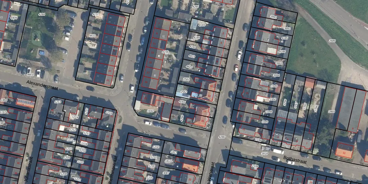 Gebruik de zoekbalk of klik op een perceel om informatie over het perceel te bekijken.