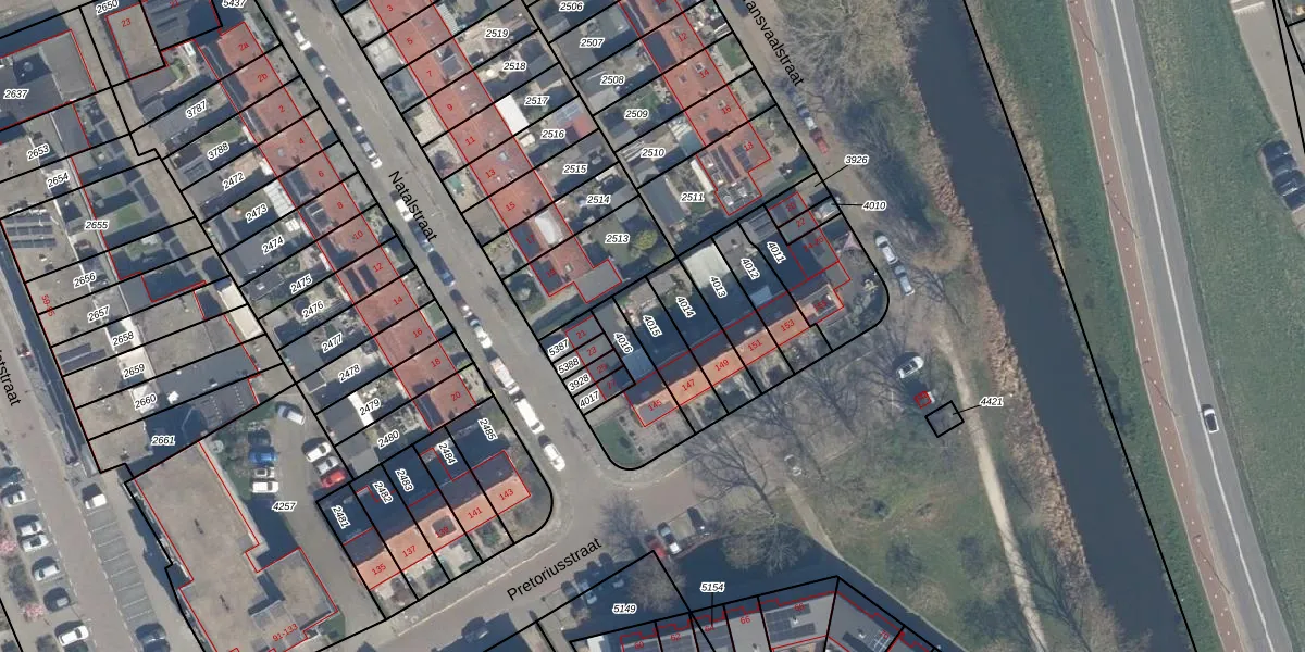 Gebruik de zoekbalk of klik op een perceel om informatie over het perceel te bekijken.