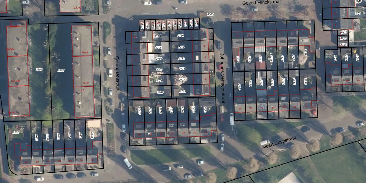Gebruik de zoekbalk of klik op een perceel om informatie over het perceel te bekijken.